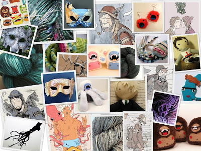 Made with Picasa. Sources: Merimask, justmadbooks, AngDavidson, kochansky, loveandasandwich, BicycleOcean, orangemoontoys, BettyTurbo, GirlCalledRic, MilkandHoneyWoolens, Bodhi Yarn, claudinemarcelle, and hedgehogfibres all at etsy.