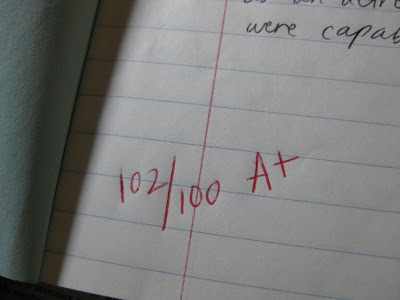 Above, what I didn't think was possible in college, let alone my stupidiculous English class. Thank you, BS, Arber's ID tests in high school, and memorization/repetition of other people's arguments skillz.