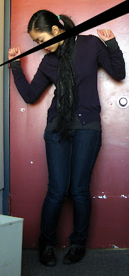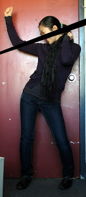 Above, scarf: Chinatown, gift. Gray longsleeve: Target. Cardigan: Uniqlo New York. Jeans: Forever21. Oxfords: Payless.