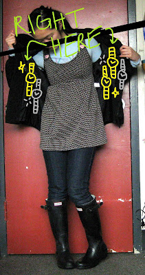 Above, jumper: Bloom. Thermal top: Old Navy, gift. Jacket: no idea. Jeans: Forever21. Galoshes: Hunters via Zappos.