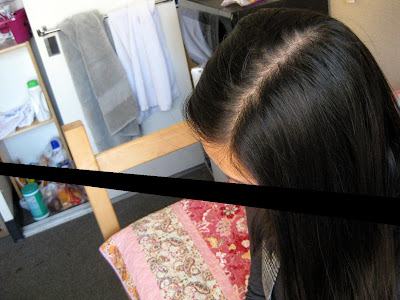 Day 5: Hair being strange. Part is redic greasy and ends are verging on frizzy, for the first time in my life. Perhaps because it has been in a bun the whole day.