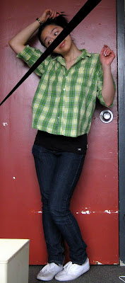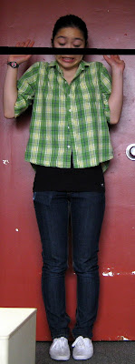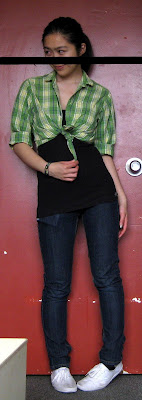 Above, plaid shirt: gift. Tank: Haight somewhere. Jeans: Forever21. Shoes: Payless.