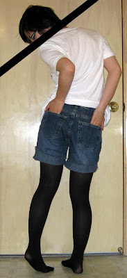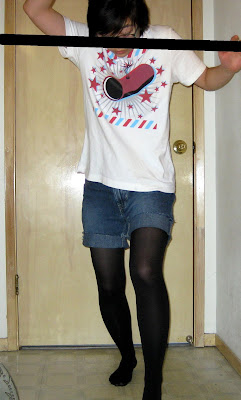 Above, coat: delia's. Sweater: K-8 school uniform. T-shirt: Old Navy men's. Jeans: Old Navy, mother's + DIY. Tights: generic. Shoes: Payless.