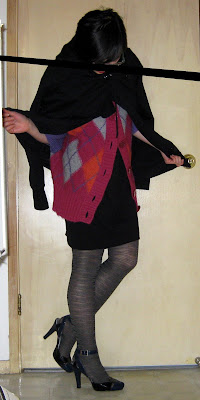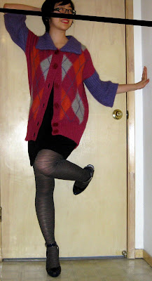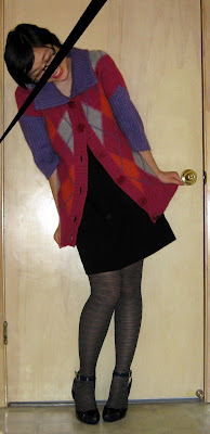 Above, jacket: gift. Sweater: United Colors of Benetton, mother's. LBD: Old Navy. Tights: Nordstrom. Shoes: Payless.