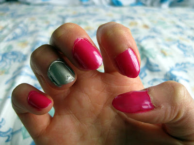 My cuticles are gross, and this is pre-shower, which means I haven't picked off all the nail polish on my skin yet, but here's the color scheme: