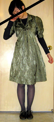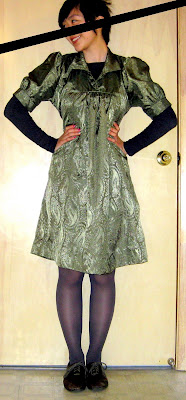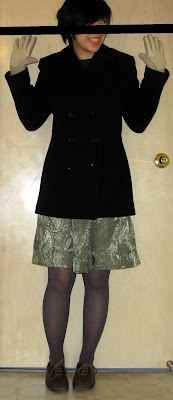 This is what I wore to class for our final presentation, but it proved completely inadequate for braving the elements, so I had to throw on a coat and a pair of gloves.