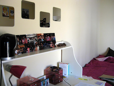 Also, here is what my living space looks like. I'm actually not feeling it much, probably because it's too organized and linear right now, but I am far too lazy (and afraid my very cheap, very old bed might collapse when I stand on it) to remove everything and re-pin them.