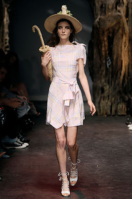 Above, from Vivienne Westwood Red Label. While I’m not interested in the dress, there is a frog on the hat, people. A frog. Explanation not required.