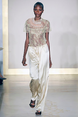 Above, from Reem Acra. I like this a lot despite the fact that I would never wear it; nor would I want to see any of something like 99% of the world's population wearing it.