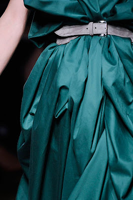 Above, from Sonia Rykiel. Smiling models makes me really pleased to see runway shows. I want that vest. It reminds me of something a host on a children's show would wear and keep an endless supply of tools in. Also, hello, thigh highs!