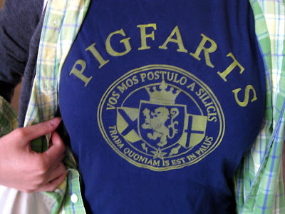 This outfit garnered one "OH!" of recognition from Danielle about Pigfarts and one comment on being leprechaun-tastic. Touche, Benjamin (of the leprechaun shorts).