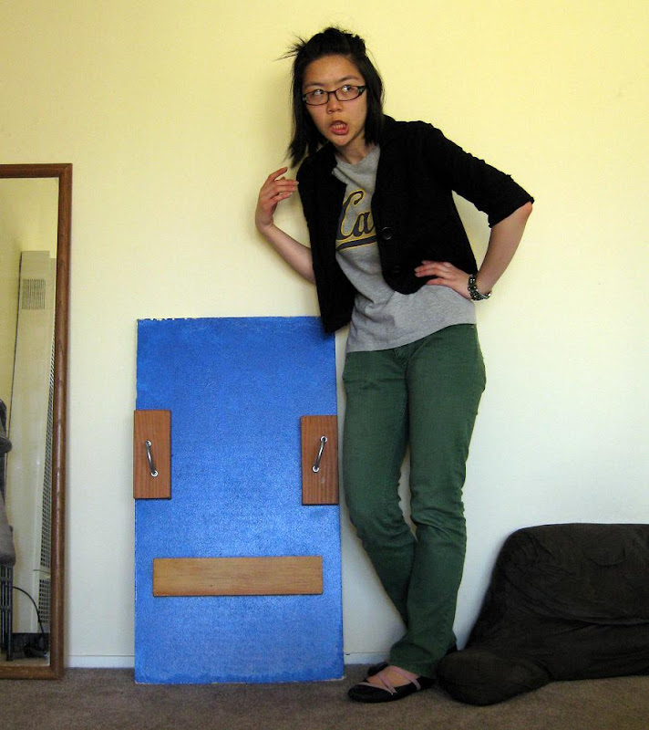 Watch: Anchor Blue. Bracelet: mother's. Cardigan: don't know. T-shirt: Cal Student Store. Green jeans: Target. Flats: Palladium Freerubber.