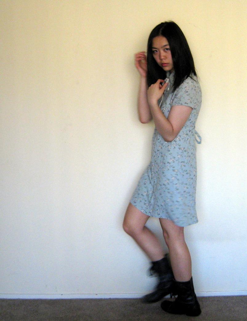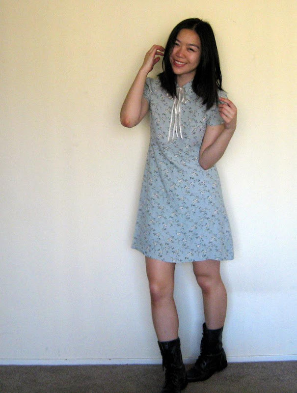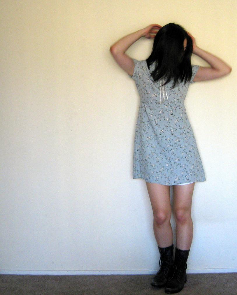 Above, dress: GAP, secondhand. Neck ribbon tie thing: lying around. Boots: Steven by Steve Madden.