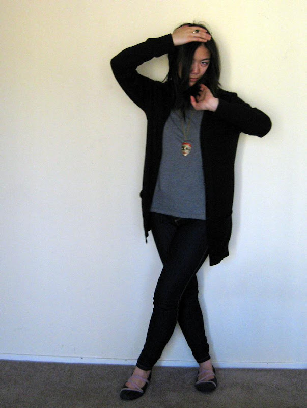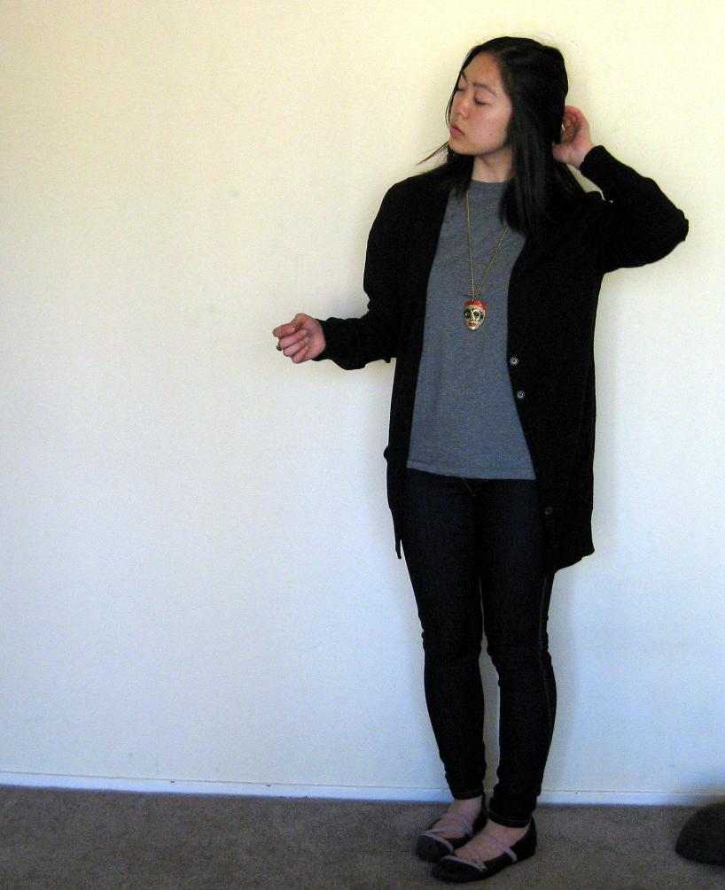 I have to admit, when I walked out of my apartment wearing this, part of my thoughts were like "I am well aware that this is one of those outfits that the general public deems acceptable and possibly put-together, but I feel uncomfortable and awkward because I am projecting an image of myself that is an inaccurate reflection of my personality, because I am not a put-together person." (The rest of my thoughts were dedicated to mentally replaying Joseph Gordon-Levitt's unexpectedly sexy drunken rendition of "Here Comes Your Man" from 500 Days of Summer.)