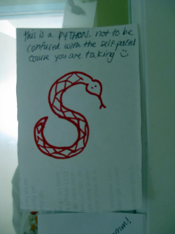 - the Python tutor I decided to "try to attach myself to" as suggested in the self-paced courses orientation, because he was totally like "...Were you at Lasertag?"