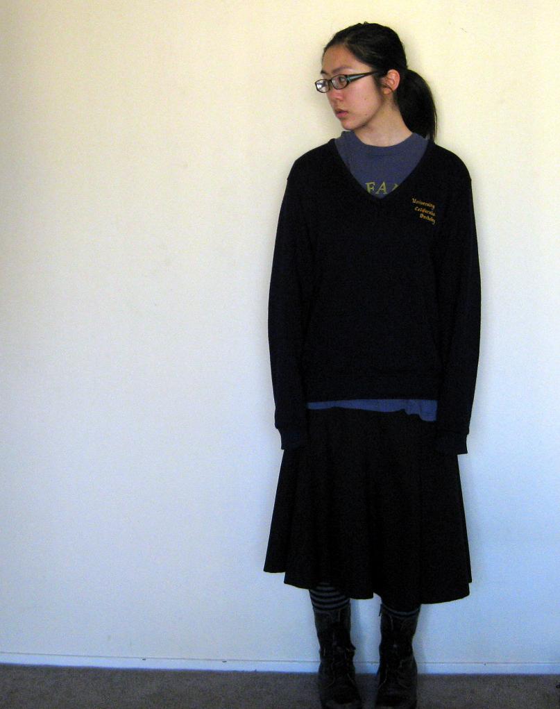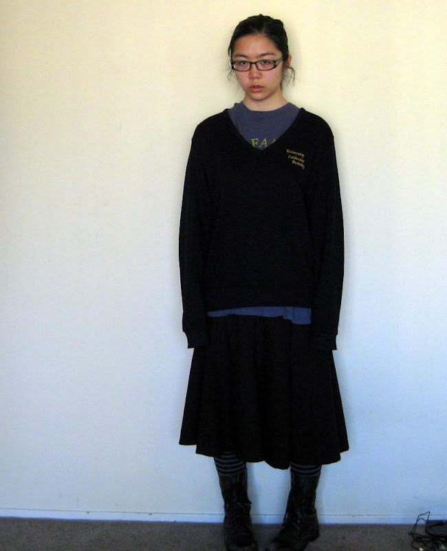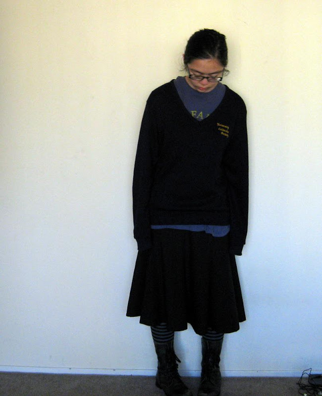 I feel like I am twelve again because I used to wear my uniform sweater oversized and my uniform skirt mid-calf (while the other girls rolled their skirts at the waistband). My legs look like stumps and this is completely sexless and I love it.