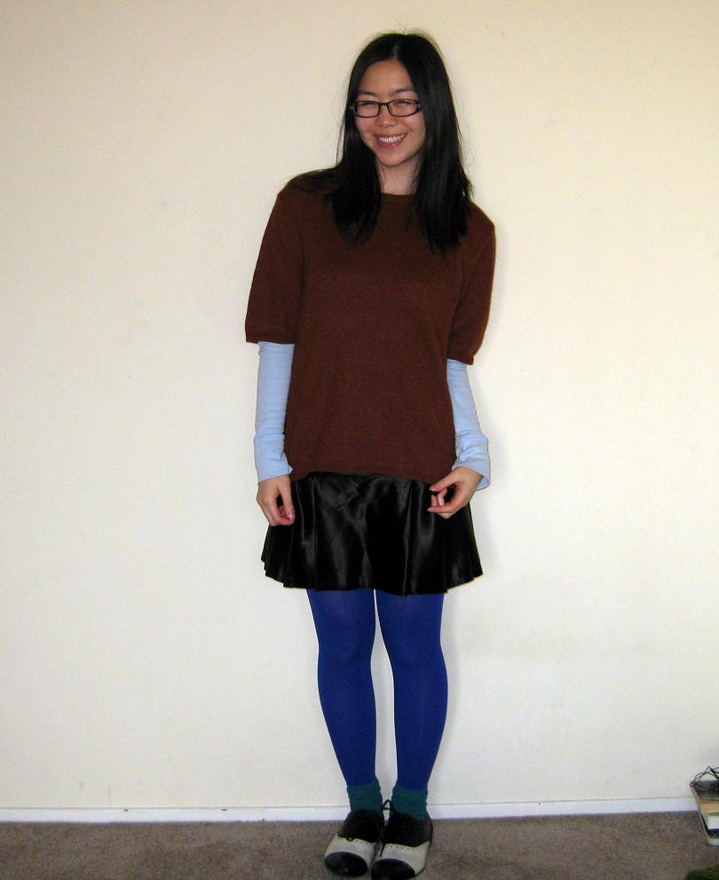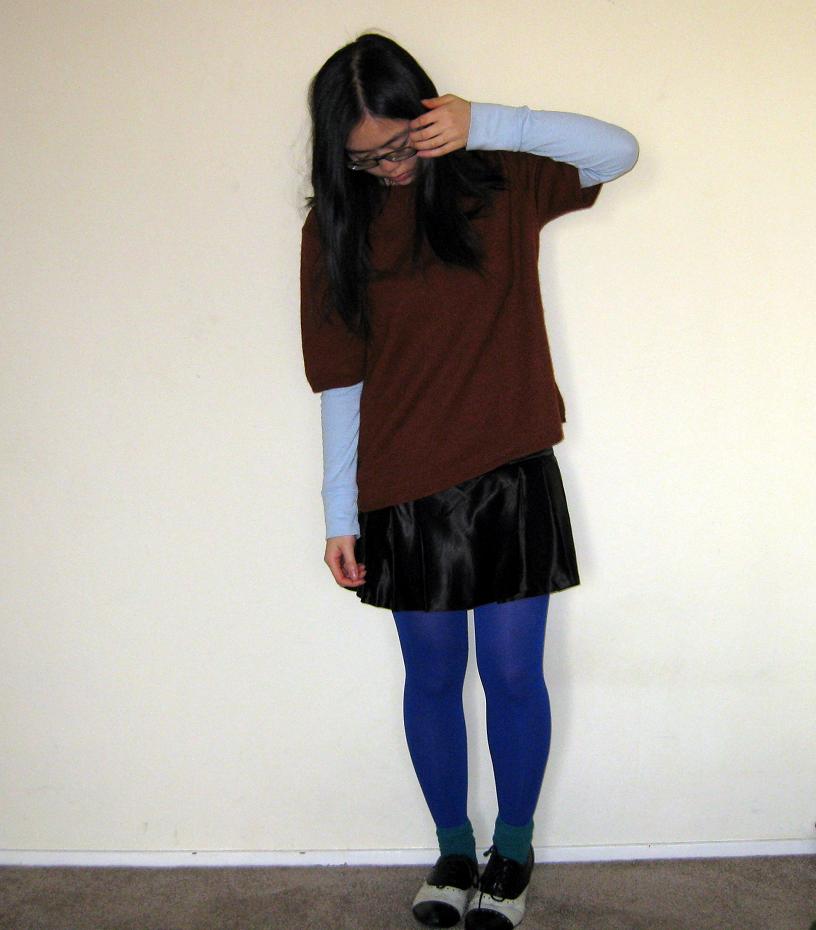I don't really know what else to say except that time is being unobliging, and I wish I weren't at school, and it is when I feel like this that I am fully certain that I value my family above all else. More than grades or money or pretty clothes or well-crafted words or personal success. I wish I knew how best to give back to my family. Maybe the best way to do that right now is to be someone who has her shit together and doesn't need to be worried about. I'm not sure how to go about being someone who doesn't need any worry allocated to her, but at least I've got the look down. (Not this look. I mean what I've been wearing the past couple of days.)