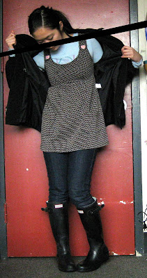 Above, jumper: Bloom. Thermal top: Old Navy, gift. Jacket: no idea. Jeans: Forever21. Galoshes: Hunters via Zappos.