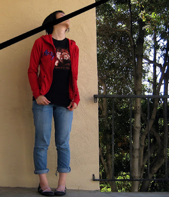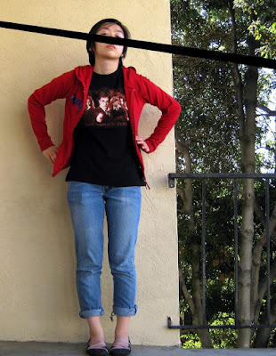 Above, hoodie: ellemenno + DIY sequins. Harry Potter/Dumbledore's Army t-shirt: Hot Topic. Cuffed jeans: Levi's via Costco + DIY. Flats: Palladium.