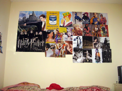 Also, here is what my living space looks like. I'm actually not feeling it much, probably because it's too organized and linear right now, but I am far too lazy (and afraid my very cheap, very old bed might collapse when I stand on it) to remove everything and re-pin them.