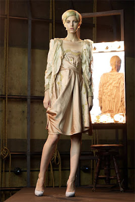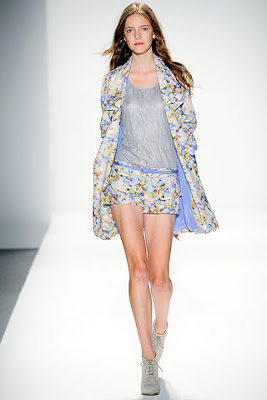 Above, from Charlotte Ronson, for whatever her legwear is (nude nylon/silk biker shorts with strategic ruching?) and the overall colors.