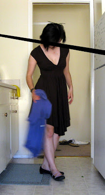 So, this dress is really awkward because if you have a bag on your side, it looks like the side of the dress got sucked into the bag and stuck up there, leaving your entire leg exposed but your back and front covered. In reality, the dress is just cut like that, with some nice draping in the front (oh, jersey!) and the sides cut up to where the sun don't shine. As you can see.