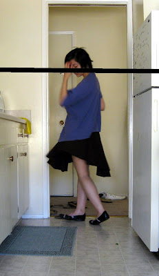 Above, cardigan: secondhand, mother's. Dress: somewhere in the Haight. Flats I am not wearing: Palladium. Foot tan: dedication and a pasty complexion.