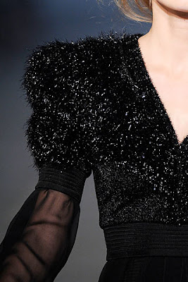 Above, from Alexander Wang. This reminds me of a sparkly ostrich, and all the Christmas sweaters I wore as a child. And I want! Especially mixed with sheer black.