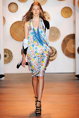Above, from Chado Ralph Rucci. I didn't care for the rest of the collection very much, but this asymmetrical print intrigued me so much. I couldn't figure out what it was until I saw a similar print in another outfit: