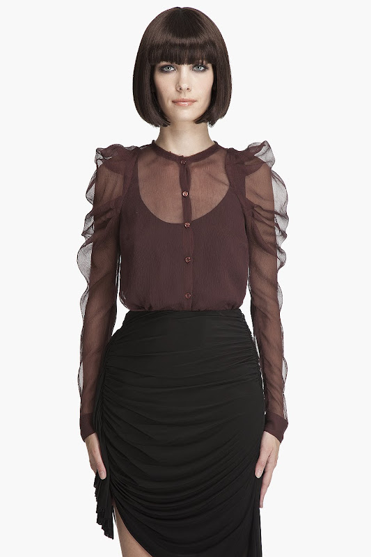 Above, McQ sheer button front blouse, $335 at SSENSE